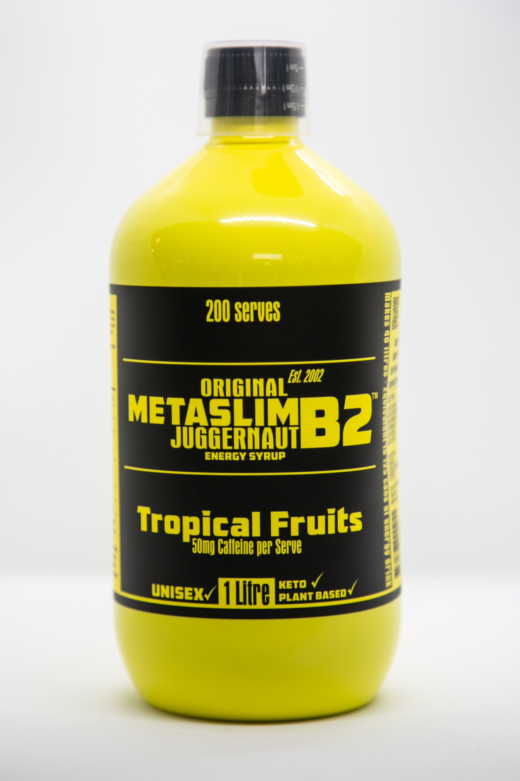 The original Metaslim B2 preworkout since 2002, revived for a new era. Now as a concentrated cordial to mix into water, making a delicious tropical fruit rapid-energy drink. With Thermogenic Terpenes, Bitter Orange Extract, Raspberry Ketones, Acetyl-L-Carnitine, Green Tea, Caffeine and Luperform™ it’s sure to pick you up and get you going right through even the toughest workout.